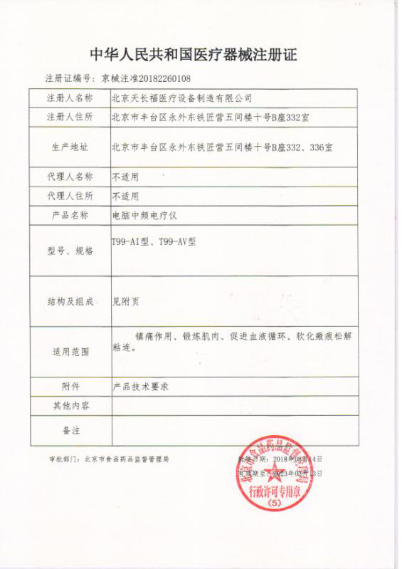 T99-FIV醫療器械注冊證